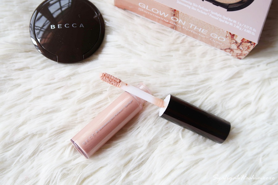 In this box contains two popular Becca product which is Becca Shimmering Skin Perfector Liquid (5g) and Becca Shimmering Skin Perfector Pressed (2.4g). It comes in a travel size yet I think it is worth because this travel size can last on me for a long time since I won't be using this everyday. I will do full face makeup when I have an event or occasion to attend. So, I think this amount is good enough for me. I'm happy with it! Hehehehee~